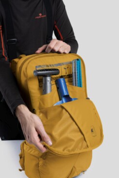 - Taschen: Gepolstertes Frontfach für Schaufel und Sonde | Zugriff über das Rückenpanel | Hüftgurttasche | Innentasche mit Schlüsselclip | Innentasche für das H2 Bag Trinksystem